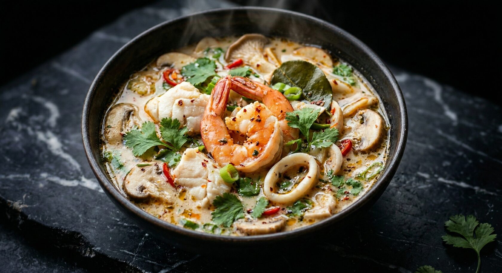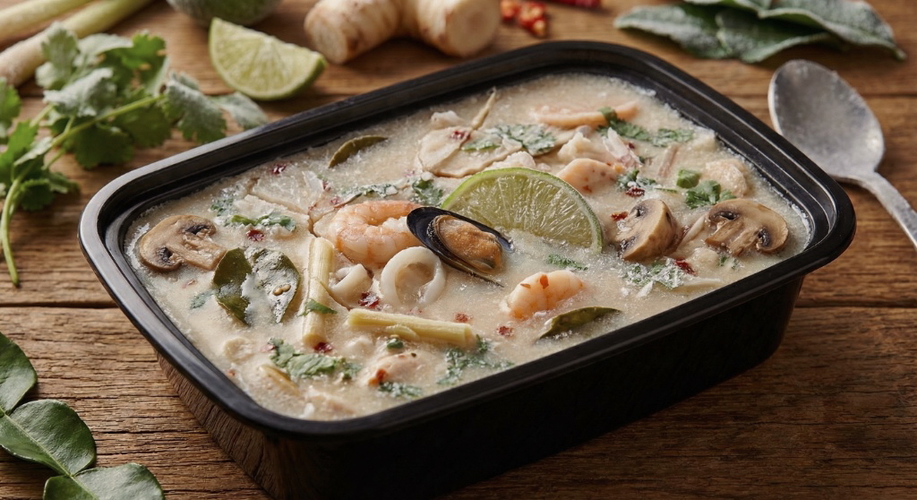 Состав: Том кха с креветками, морепродуктами и все в одной коробочке. ⠀ просто смешиваете его с водой (800мл) 2 минуты настаиваете на плите и получаете 2-3 шикарные порции 🤌🏽