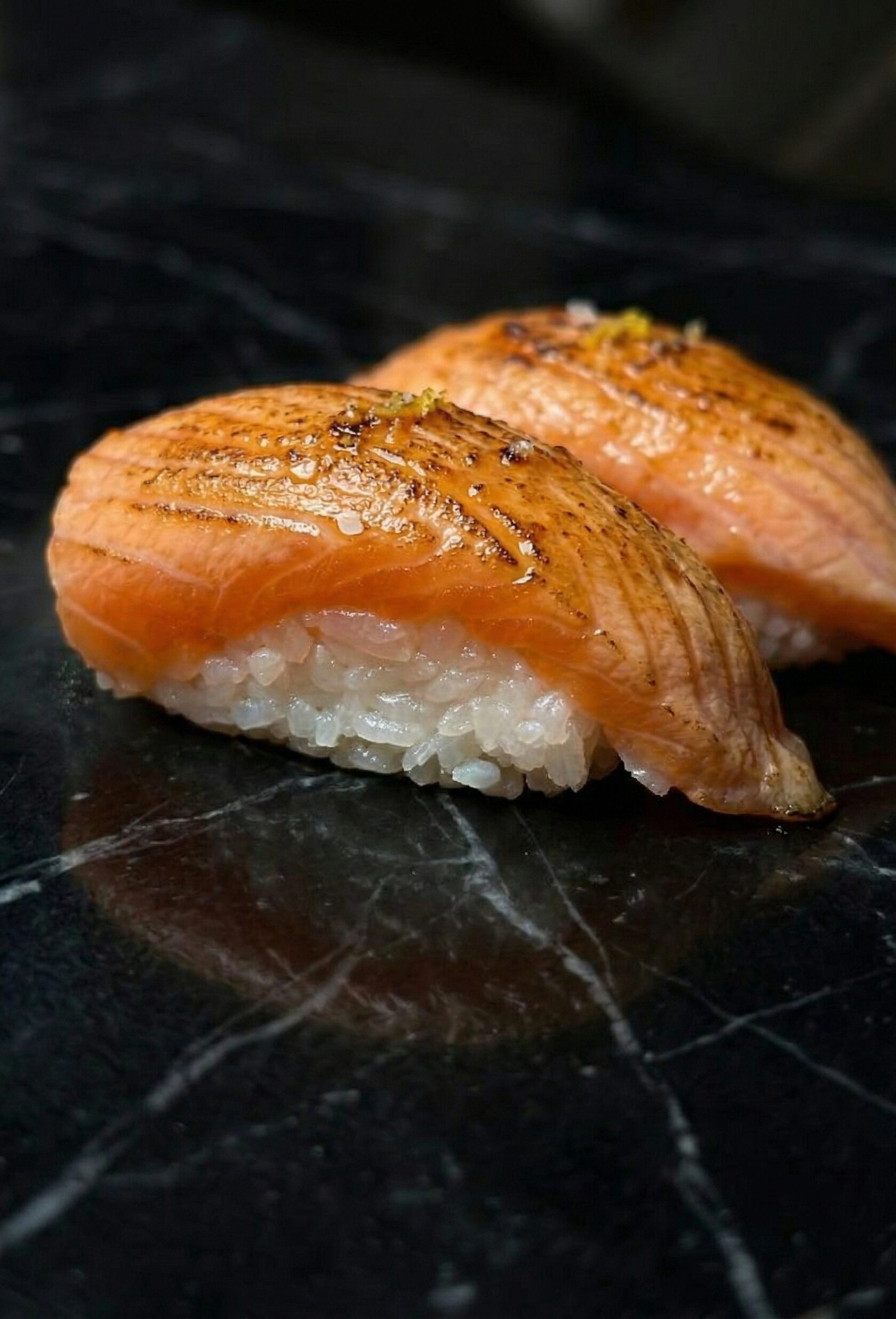 Лосось с авокадо и огурцом, щедро приправленный тобико и фирменным соусом. Шапка заправлена дополнительно лососем. Яркий, сочный и современный ролл с яркой подачей вкуса.